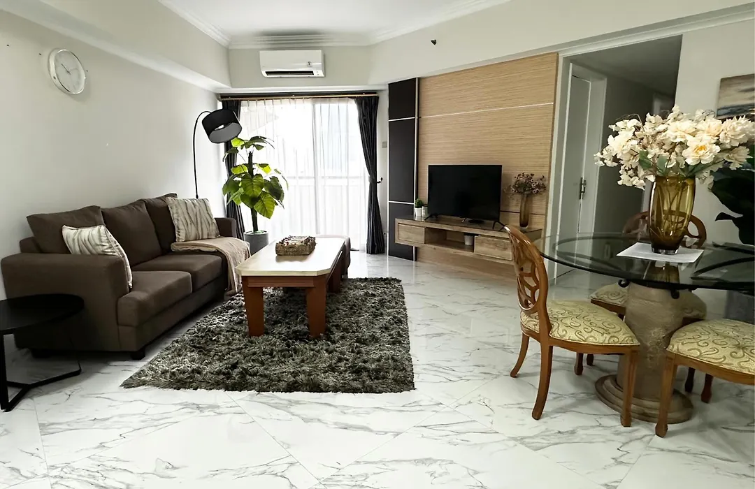 The spacious 2-bedroom Cozy 3Br Sudirman Tower Next To Mall Lippo Nusantara Jakarta apartment is approximately 10 minutes' walk from World Trade Centre Sudirman. Situated a stone's throw from PT Dessert Island, the apartment offers a terrace where guests can relax and enjoy the garden view.